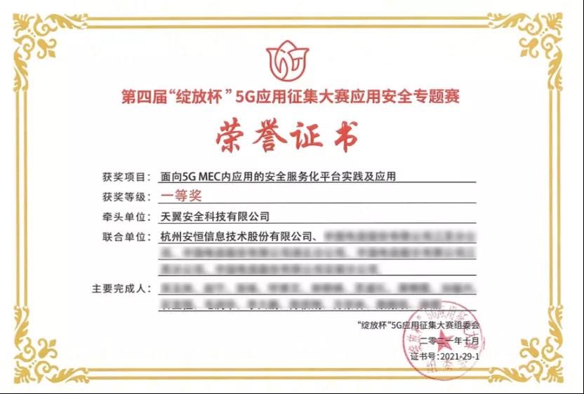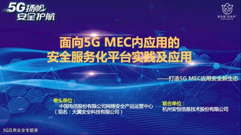 日前,由工业和信息化部组织的第四届“绽放杯”5G应用征集大赛应用安全专题赛结果出炉,经过层层筛选,天翼安全联合安恒信息共同打造《面向5G MEC内应用的安全服务化平台实践及应用》技术服务方案从323个参赛项目中脱颖而出,荣获一等奖。