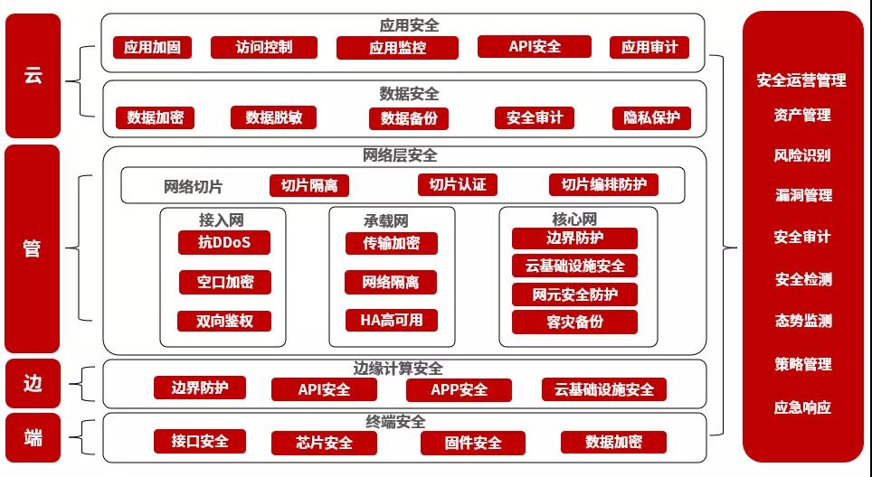 为了应对5G应用安全需求与挑战,天融信从物联网安全、边缘计算安全、工业互联网安全、数据安全等多方面入手提供5G网络安全的产品与解决方案,形成涵盖云、管、边、端侧安全的5G安全架构,以及贯穿整个5G业务的安全运营管理,为5G应用业务赋能安全,助力我国5G应用“扬帆远航”,持续为推进“数字中国”建设贡献力量。