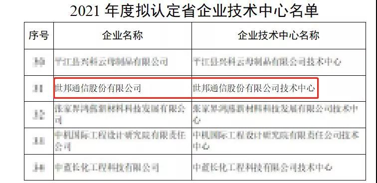 世邦通信被认定为“湖南省企业技术中心”