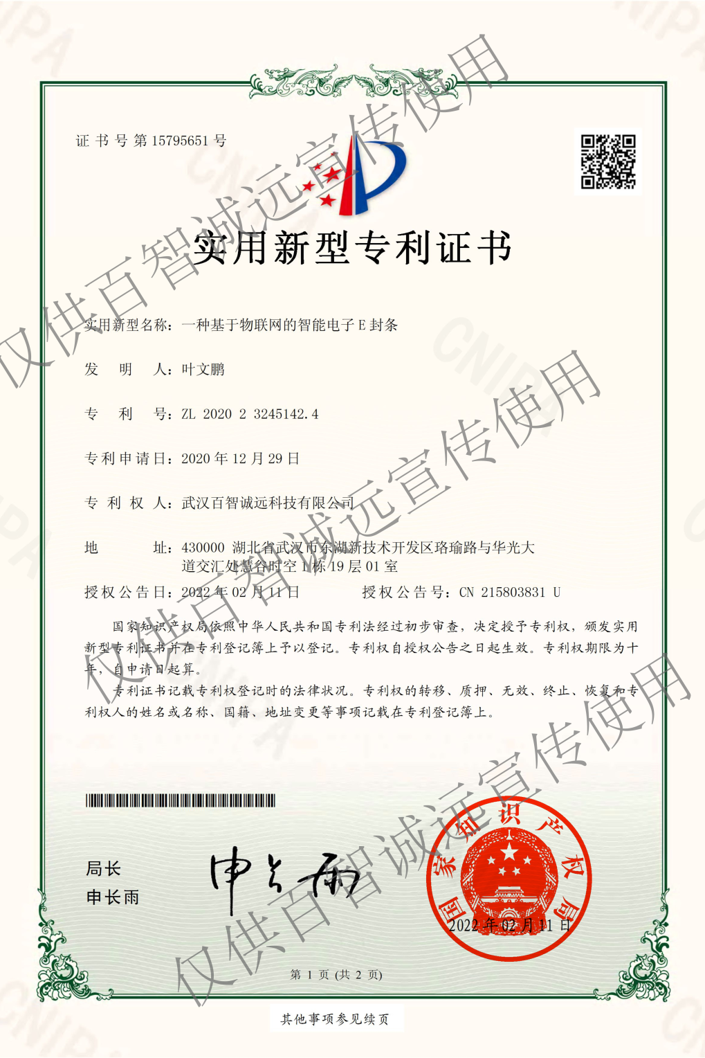 好消息!百智诚远又一项实用新型发明专利获国家知识产权局授权: