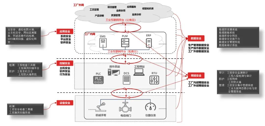 天融信将新一代网络安全技术与工业互联网深度融合,依托10余款专用于工业领域的安全产品+工业安全服务能力,再结合工业互联网安全自身特点,从设备安全、网络安全、控制安全、应用安全和数据安全角度出发,构建完善的工业互联网安全防护体系,强调技术与管理相结合、动静互补,全面持续提升工业互联网安全保障能力。