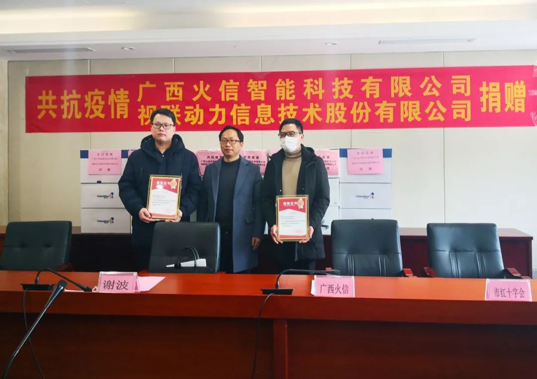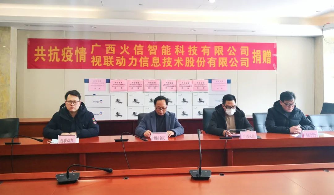 当天下午13点,捐赠仪式在桂林市创业大厦会议中心举行,桂林市人民政府副秘书长、市疫情防控指挥部办公室主任谢波,桂林市红十字会秘书长马金宝,视联动力和广西火信智能科技有限公司相关负责人出席。