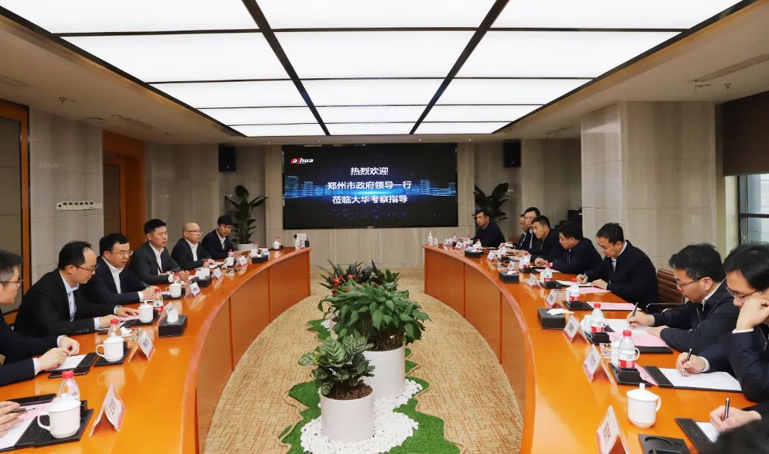 傅利泉对何雄代市长、潘开名副市长等一行的到访表示热烈欢迎,感谢郑州市委、市政府对大华股份长期以来的信任和支持,并介绍了大华的发展历程、研发创新、产业布局等情况。他表示,郑州作为中原城市群核心城市、国家中心城市,数字经济呈现较好发展态势。围绕郑州战略部署和城市、科技发展需要,大华期望与郑州市委、市政府进一步深化合作,充分发挥自身产业链优势和数智化技术优势,助推城市数智化转型,为区域经济高质量发展贡献力量。