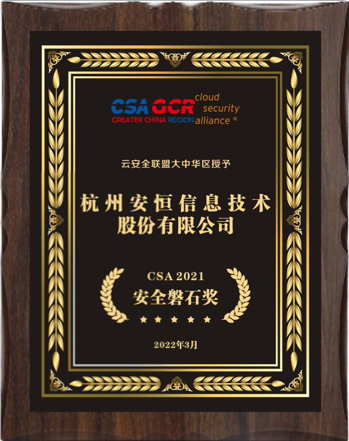 CSA 2021安全磐石奖是CSA最具含金量的奖项之一,是给予安全能力成熟、综合实力强,并能给业内提供良好参考价值和解决方案的企业的一项特殊荣誉。能荣获这项荣誉,彰显了安恒信息过硬的专业实力和广泛的市场认可。作为数字经济的安全基石,安恒信息以云安全、大数据安全、物联网安全、智慧城市安全、工业互联网安全五大方向为市场战略,凭借强大的研发实力和持续的产品创新,开发适应新场景的网络信息安全新产品,提供综合网络信息安全解决方案,在行业中形成了强大的竞争力。