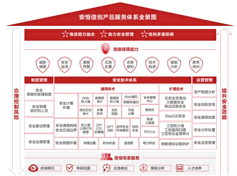 一直以来,安恒信息高度重视信息技术应用创新和实践。作为中国电子工业标准化技术协会信息技术应用创新工作委员会成员单位,公司紧跟国家在核心技术创新方面的步伐,基于信息安全等级保护体系,在信创生态下已形成一套集安全软硬件、安全服务、安全集成的完整解决方案。