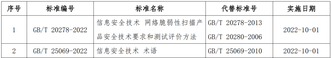 近日,国家市场监督管理总局、国家标准化管理委员会发布中华人民共和国国家标准公告(2022年第2号),全国信息安全标准化技术委员会归口的4项国家标准正式发布。天融信依托多年在网络安全技术和产品方面的积累和实践,深度参与了GB/T 20278-2022《信息安全技术 网络脆弱性扫描产品安全技术要求和测试评价方法》和GB/T 25069-2022《信息安全技术 术语》两项国家标准的研制。