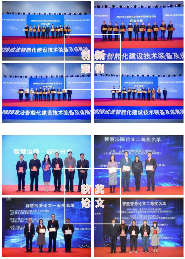 在“2020政法智能化建设技术装备及成果展”期间,对2020案例创新及论文征集评审结果进行了发布,并对获奖单位和个人颁发了奖章和证书。