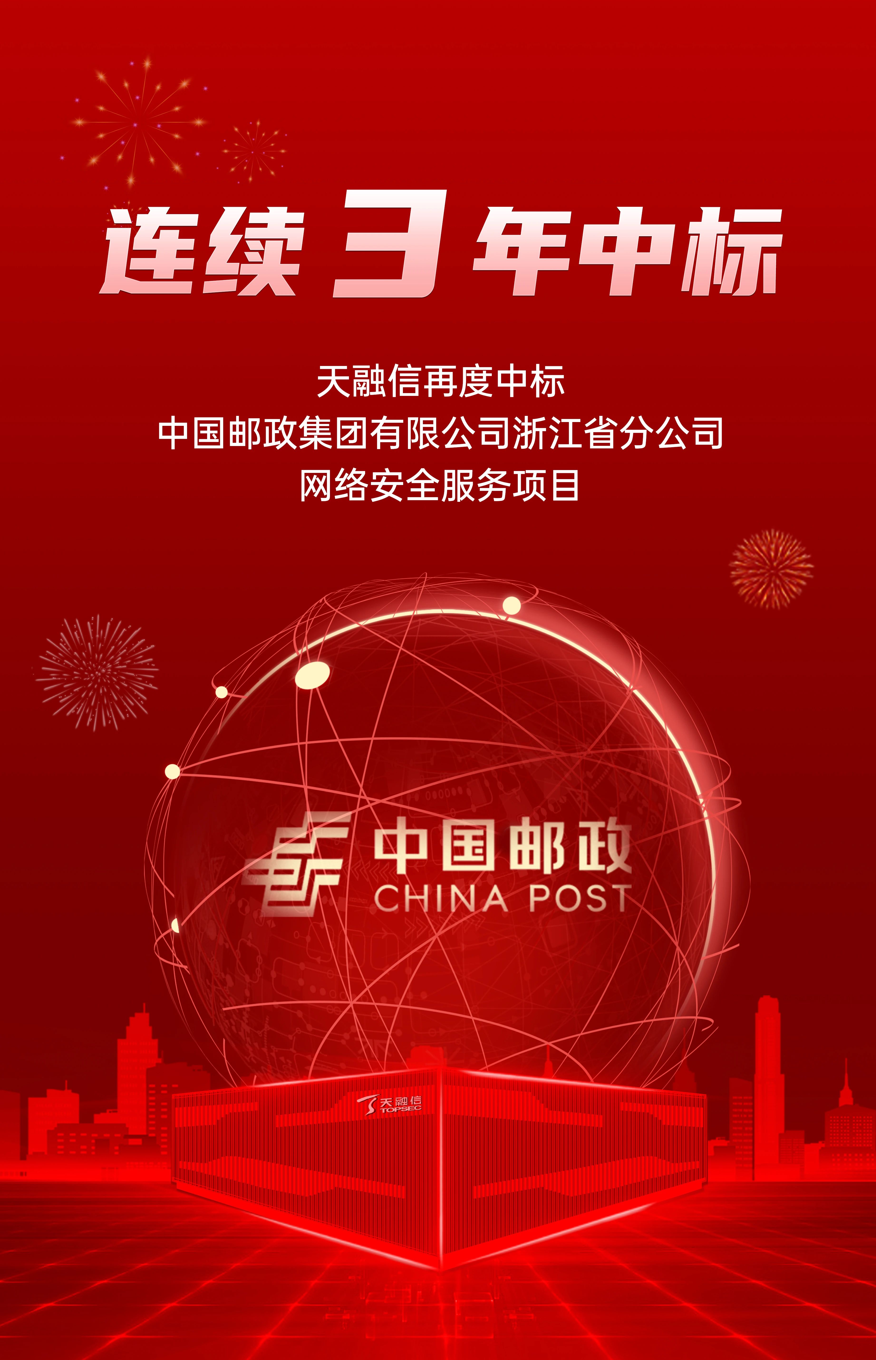 近日,天融信成功中标中国邮政集团有限公司浙江省分公司网络安全服务项目。自2022年起,天融信已连续三年中标浙江邮政安全服务项目,持续为邮政系统输送安全能力!