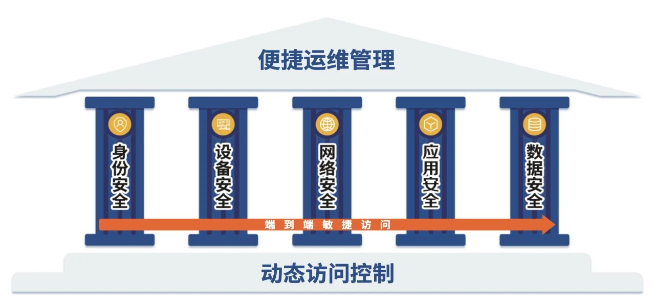 为此,该国有银行希望基于零信任理念,依托于其提供基于身份的、可持续评估的、精细化访问控制能力,实现和完善远程办公等场景下的安全管控需求。访问权限能根据用户行为、网络态势、终端安全状态等属性进行动态、细粒度调整,并能实现网络端口和服务隐身,减少漏洞被发现和利用的可能性。同时实现将安全能力以服务的形式对外输出,推动该国有银行网络安全由“主动防御”向“价值输出”转型。