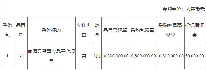 [法安导读]南靖县智慧应急平台项目招标公告。采购单位:南靖信息技术产业有限公司;开标时间:2022年10月09日...