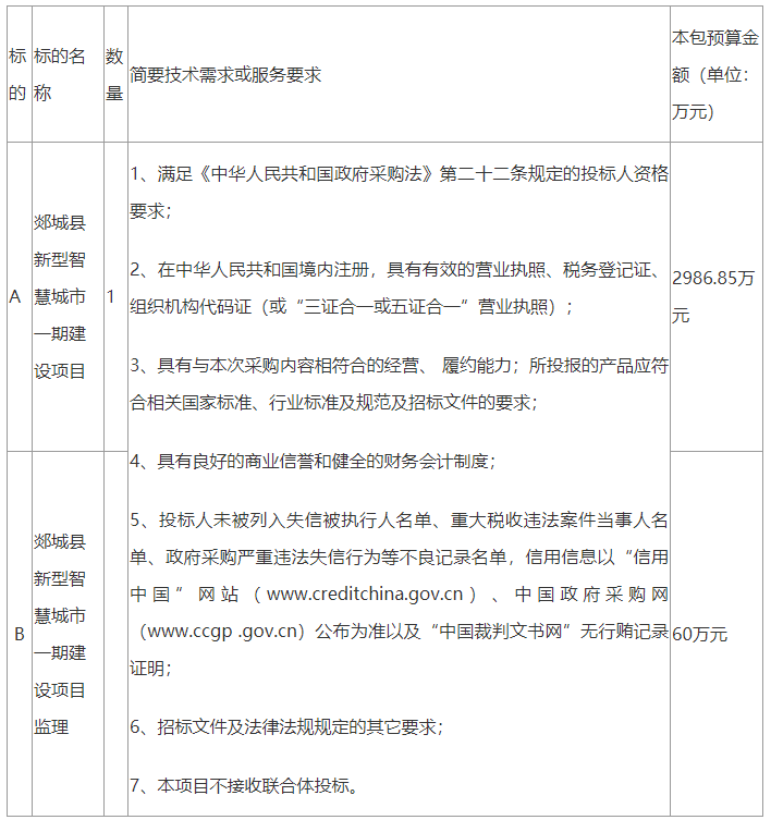 [法安导读]郯城县新型智慧城市一期建设项目招标公告。采购单位:郯城县人民政府办公室;开标时间:2022年11月3...