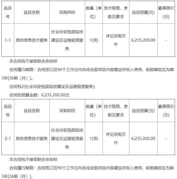 合同包1(社会治安视频监控建设及运维租赁服务):