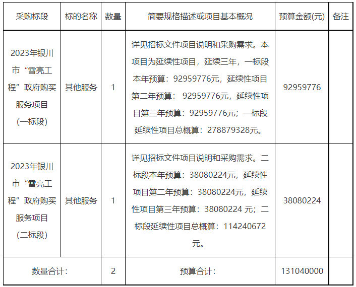 项目名称:银川市公安局“雪亮工程”政府购买服务项目一、二标段