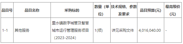 项目名称:里水镇数字城管及智慧城市运行管理服务项目(2023-2024)