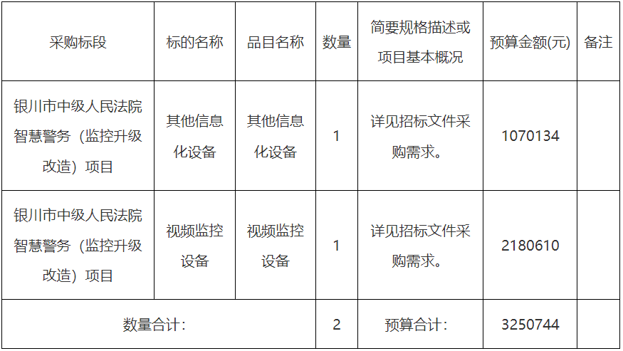 [法安导读]银川市中级人民法院智慧警务(监控升级改造)招标公告。采购单位:银川市中级人民法院;开标时间:2024...