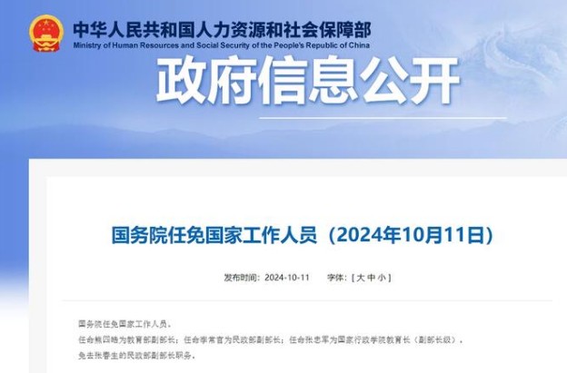 据人力资源和社会保障部官网11日消息,国务院任免国家工作人员: