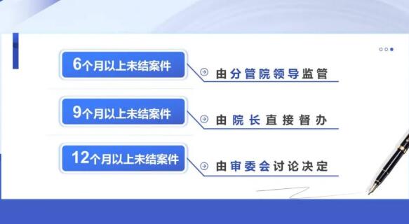 二是狠抓审限,流程跟进严把关。秦淮法院牢固树立“简案双周结案、类案当月结案、繁案双月结案”的审判目标,依托电子化办案平台,建立院庭长审限变更“三级把关”制度,利用正向引导和反向通报,严格审限变更管理。加强超长期案件清理力度,通过审判质效数据系统,对即将超6个月和9个月的案件进行前置提醒,分别由分管院长和“一把手”督办,12个月以上未结案件逐案上审委会讨论,一案一策,限期结案。