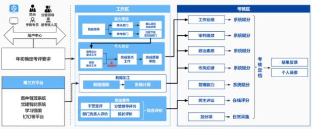 探索平台互通和数据共享。“鹿法智考”应用中的案件审判质效数据从办案办公平台提取,办案任务以外的综合工作可依托内置的“工作区”自动抓取个人绩效数据,并从学习强国等平台中提取相关数据,一键导入至应用内,打破数据壁垒,实现多跨协同功能,为考核减负增效。