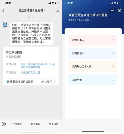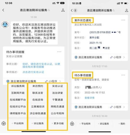 服务号通过微信向诉讼参与人主动推送案件进展信息,向各类用户推送业务办理提醒。另外,服务号还即将提供微信电子送达和在线服务智能引导等便民信息服务。