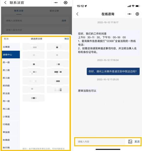扩展微信沟通渠道,通过在线咨询答复的高效方式,有效减少各审判业务部门查询、咨询电话和线下来访,减轻当事人诉累。