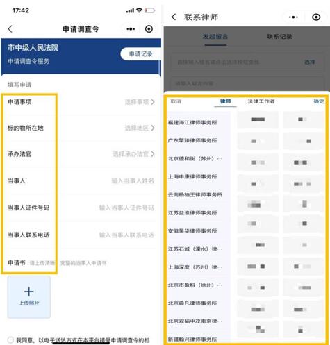 推动信息共享和业务协同,通过服务号一号连接律师、法官、政府相关部门工作人员,实现在线律师身份校验和业务在线申请、在线审批、在线反馈的全流程业务闭环,大幅提升调查令工作质效,为律师提供执业便利。