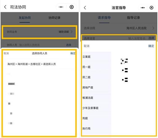 干警通过服务号可在线向网格员、调解员发起辅助调查、调解、执行、送达、排查、化解等事项,联动开展化解矛盾工作。