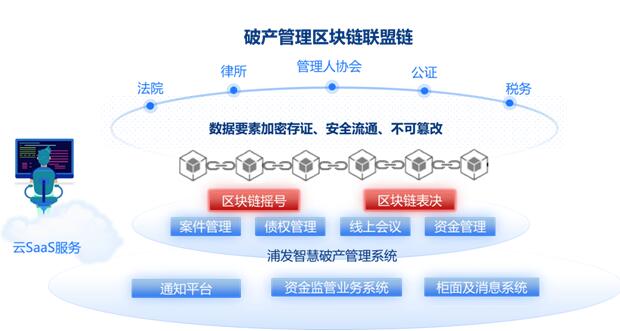 在此背景下,为更好地服务企业破产(重整、清算)等市场化退出需求,提供贯穿企业破产全流程的金融服务,浦发银行与各地法院、破产管理人协会深度合作,以破产管理人为破产案件的驱动核心建设智慧破产管理系统,提供一套基于区块链的破产管理创新产品,实现破产流程信息化、破产服务标准化、破产管理一体化。运用区块链技术构建“金融+法务”新体系,提供破产管理领域数字平台服务能力,构筑“一案一账户”资金监管模式,保证资金安全,支撑企业破产阶段的金融服务,提高银行参与破产程序的有效性。