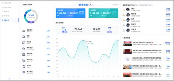 六是做到“智分析”。利用大数据分析技术,对企业咨询和求助的数据进行分析,快速掌握辖区企业关心的热点和重点问题,从而为领导决策提供数据支撑。通过企业用户在沟通过程中的体验评价,帮助法院发现工作中的不足,改进营商服务质量。