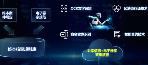运用图文识别(OCR)、命名实体识别等人工智能技术,依托电子卷宗核查规则库,核查模型进行核查。对印刷体电子卷宗编目识别准确率比较高,可达到95%以上。