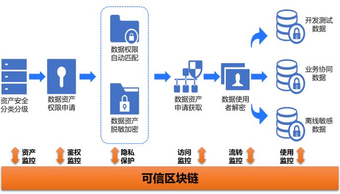数据安全管控基于《数字安全法》及行业规范,结合区块链等数据安全防护技术,建设全方位多维度的数据安全管控体系,对数据全生命周期各环节实现安全保护。平台通过对用户身份的鉴权,强化多系统间用户访问过程的安全性、可靠性和可控性,对多系统接口的全面鉴权管理,保障数据访问的有序、规范、可控,真正做到用户、开发、运维等不同角色的人密分离,实现数据访问、应用、运维过程中的安全管控。平台对数据服务跨层级、跨系统、跨部门全生命周期可信监控,通过用户关键操作行为的跟踪和数据应用全过程监控等,有效解决法院业务上下级交换数据跟踪监控、多点交换数据跟踪监管、跨应用数据维度篡改、数据交换接口开发调试权责等问题。
