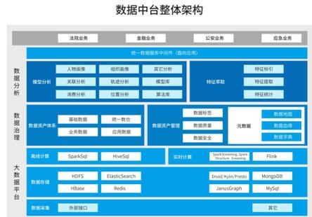 司法数据中台及深度应用平台采用了微服务架构、分布式文件及对象储存、数联网等技术重新构建大数据生态,坚持标准先行的原则,对“智慧服务、智慧审判、智慧执行、智慧管理”各个核心业务系统的全量历史数据和实时生产数据进行采集、治理、融合,整合法院内部数据及法院外部数据,分层建设贴源库、标准库、融合库、主题库、专题库,形成数据资源管理平台,实现辖区两级法院的结构化数据、文书数据、卷宗数据和视频数据的集中存储、管理、调阅、共享、应用,对数据进行全流程管控、实时共享及智能推荐。加强应用系统整合优化,强化业务系统交互和数据共享渠道,真正实现数据统一管理、统一出口、统一服务,建成具备保定特色的标准、有用、好用的司法数据中台及深度应用服务体系,真正解决了数据互通难与应用难的问题。其整体架构如下: