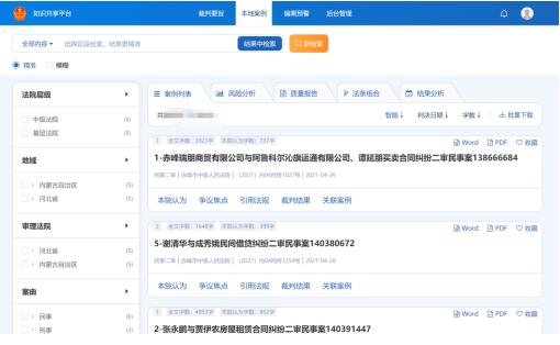 搭建私有数据库,可同时供赤峰中院和赤峰市所有基层法院使用。系统自带数据上传和对接内部数据库接口形成嵌入式菜单,自动获取法院系统内的相关文书添加至本地智库。系统着力打通不同法院之间、公开数据与未公开数据之间的信息壁垒,法院内部成员可以通过平台检索、查询本院添加的私有案例数据,实现法院内部资源同步共享。