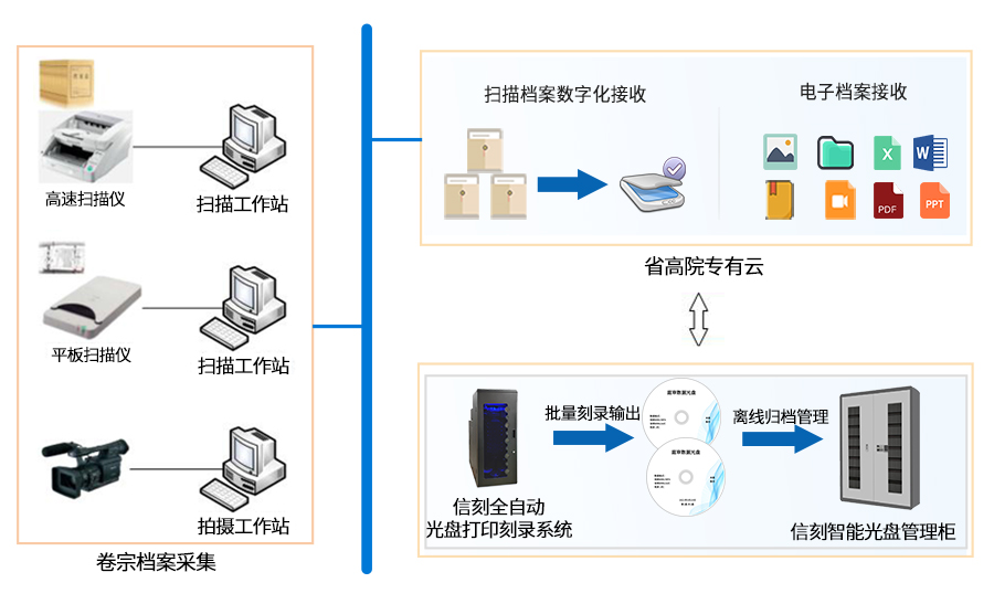 [法安导读]信刻根据用户需求推出电子卷宗档案光盘集中刻录归档管理方案,为用户提供自主研发的国产光盘打印刻录一体机...