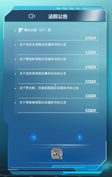 当事人通过扫描二维码,可将网上立案、庭审直播、司法拍卖、智能应答等16项功能模块同屏到用户手机上,方便当事人精准快捷享受诉讼服务。