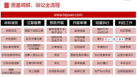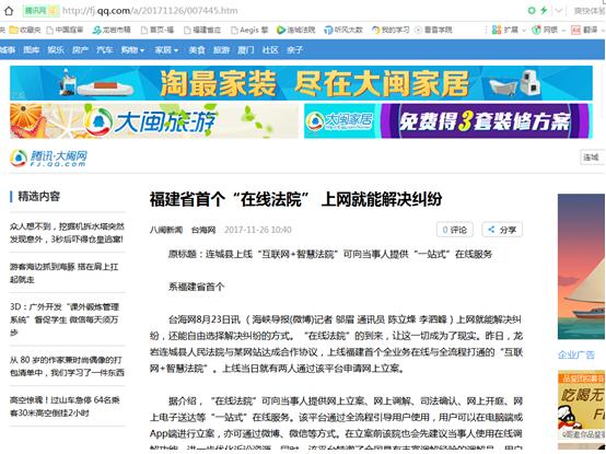 在线法院”平台是福建省首个全业务在线与全流程打通的“互联网+智慧法院”,当事人通过互联网平台可以真正享受到足不出户就能解决纠纷的便利。“在线法院”向当事人提供网上立案、网上调解、司法确认、网上开庭、网上电子送达等“一站式”在线服务。