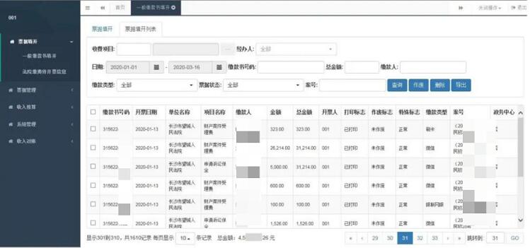 票据管理:系统将票据打印所需的案件信息、缴费信息传输给非税票据系统,实现票据业务的线上办理。