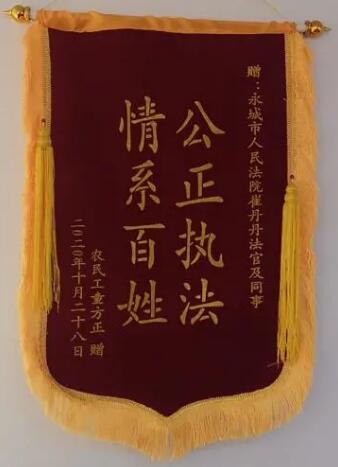 近日,家住湖北省的农民工董某给永城法院执行法官送上了一面锦旗,从申请立案到法官收到锦旗,仅用了15天,且均为“线上操作”,这是智慧法院建设给当事人带来的极大便利。