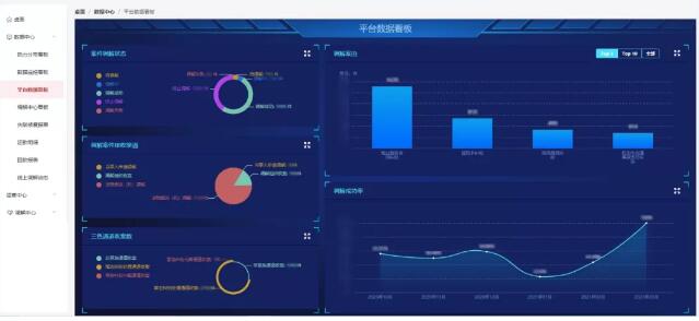 建立数助治理中心,以平台为集成中心,通过数据采集、运算,平台可以自动研判矛盾纠纷风险点,以热力图的形式显示矛盾纠纷的地区、时间分布,并以颜色分级标识矛盾纠纷的冲突强度,能够及时发现存在的风险点,为党政机关和相关组织提出预警预防信号,提升各单位预防处置能力。