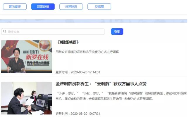 新罗法院同龙岩市银行业保险业消费者权益保障中心共同签订了《关于建立金融纠纷诉调对接工作机制实施意见》,开通金融消保中心连锁端口,平台上线金融解纷专区,同步发布金融新闻、法律法规及典型案例,在线展示调解员履历与调解专长。同时,挂牌设立“调解超市新罗在线退休法官工作室”,坚持网格化管理纠纷,开展纠纷巡逻,落实“坐诊”机制,强化入户劝解、现场疏导、调后走访等工作,该工作室成为小区综合治理的试点和亮点。