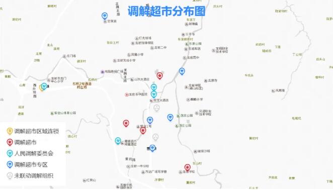 新罗法院在矛盾纠纷较多的部门设立“专业调解超市”“巡回调解超市”等阵地。在交警大队内部设立具有独立编制的交通庭,通过就地立案、就地调解、就地送达、就地保全等方式,“一站式”快速解决交通事故引发的纠纷。此外,在人民法庭、医院、工会、矿区等设立了“巡回调解超市”和调解工作站,给每个法庭配备金牌调解员,辐射带动周边纠纷的一体调处。将条件成熟的镇街、村居、行业组织等纳入平台,设立衔接端口,从而打造出超广角立体型全覆盖的调解网格。