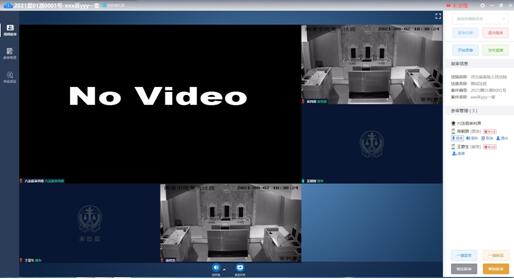 在押解被告人进入法院后,司法警察可通过警务保障数字化平台调看院内监控,可全程掌握被告人进入法院临时羁押场所的过程。各被告人进入临时羁押室后,其即时情况在平台上清晰可视。平台如发现异常,即可通过单兵执法仪指令值勤司法警察立即处理,并可对处理过程进行远程指挥,最大限度地保障押解安全。平台还通过与庭审数字法庭系统的数据对接,实时向警务指挥中心呈现庭审现场情况,若出现扰乱法庭秩序的行为,指挥中心即发出指令配合法官指挥司法警察进行现象处置,如果发现庭审现场警力不足,还可指挥附近预备警力到达现场支援。