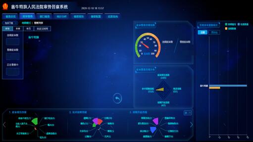 翁旗法院充分运用信息化技术开展多维度、可视化审判态势分析,为调配和优化司法资源提供依据,建成智能化、自动化、静默化的“双评双查”管理模式,具体包括法官业绩考核评价系统,实现法官业绩、工作效率智能分析和排名。该院建成庭审巡查系统,支持庭审主动智能巡查,提高庭审规范性;建成文书质量巡查系统,支持法官主动巡查文书质量、修改以及统计排名,文书质量得到明显提升。
