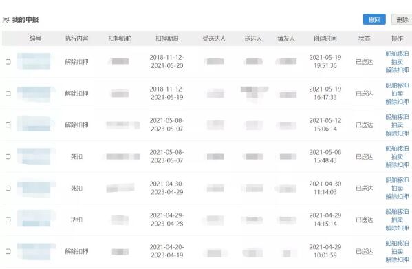 执行干警只需登录平台,选择“活扣”“死扣”“解除扣押”等执行内容,填写船舶名称、扣押期限、船籍港等案件基本信息,提交执行裁定书、扣押船舶命令等法律文书,即可向浙江海事局及其下属各分支局送达协助执行通知书,将原本至少耗时半天的船舶司法扣押程序精简至2-3分钟。