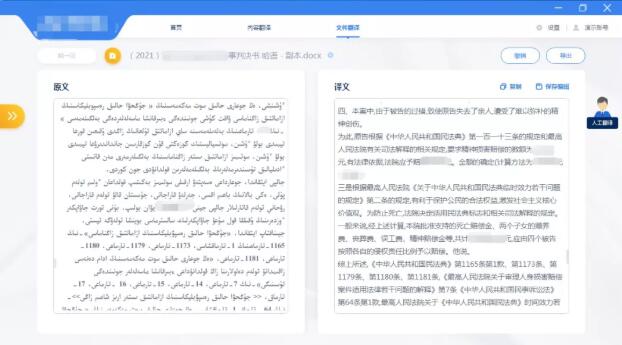 乌鲁木齐中院充分利用智慧法院建设成果,积极探索翻译技术的本地化应用,开发出多语种翻译系统。该系统能够实现多语种(汉维哈)文书之间的快速文本互译,着力解决在卷宗翻译、双语文书翻译、裁判及通知文书翻译等场景下的翻译需求。以一份19页的哈萨克语裁判文书为例,正常情况下翻译成汉语版需要1-2天,使用多语种智能翻译系统只要6-10秒就可以完成初步翻译工作,极大地减轻了法律诉讼和司法业务中的文书翻译工作强度,提高了翻译效率,节省了翻译经费。