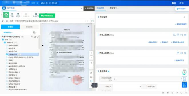 第三代智慧审判系统中的一体化伴随式回填功能,拥有卷宗流转与信息录入相结合的左看右写界面,所见即所得,法官可以通过电子卷宗平台进行信息回填和提取,卷宗阅览模式多样,辅助法官进行批注、订阅、搜索等,实现办案流程与电子卷宗深度融合。