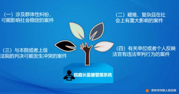 一是加强审判流程管理信息化。吉林中院深度应用院庭长监督管理平台系统,实现对“四类案件”全流程静默式监管,彻底转变以往“盯人盯案、逐案审批”的落后监管模式,实现了审判监督与有序放权有机统一。全面落实网上评查、审限管理、文书智能筛查、案件信息联网质检等应用,拓展网络审判管理的新路径。