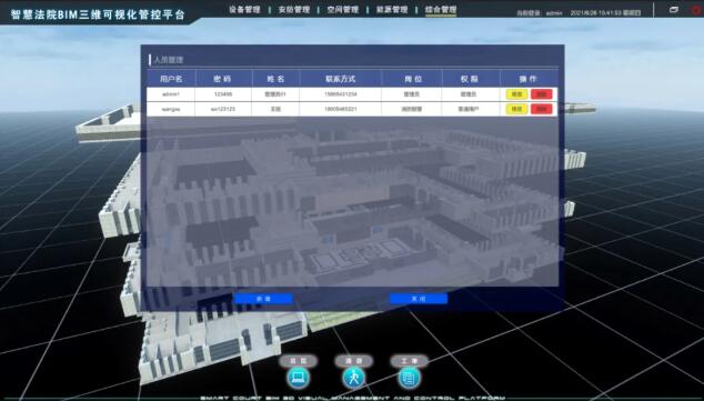 智慧法院BIM三维可视化运维平台研发配置移动端,配合东营中院大楼BIM三维可视化管理系统进行管理,完成多项业务功能的管理,移动端包含相关的工单发起、处理及审核,员工资料管理,法院运行状况监测以及电子巡更打点及信号传输等功能。可视化运维平台让可数据视化在指尖实现,让方便快捷跃然眼前。