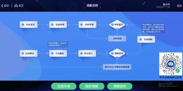 点击我要调解,可以在线申请调解,填写纠纷描述、上传材料等信息,选择调解组织提交即可。
