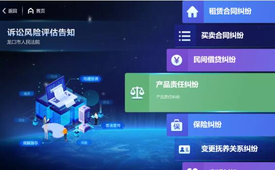 点击诉讼风险评估,选择纠纷类型,如实填写要素,可评估出诉讼风险指数,并生成分析建议、解决途径等分析报告。