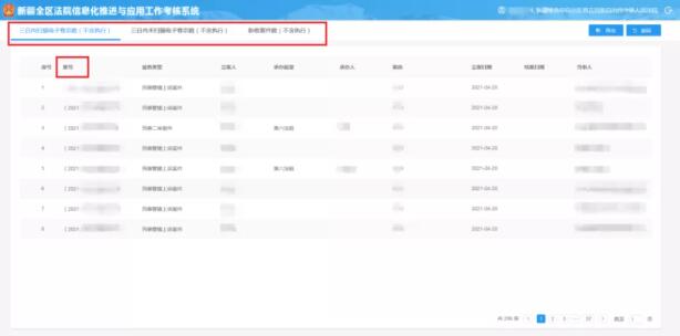 2019年底,新疆高院出台并上线了信息化推进与应用工作考核系统,详细制定了各项考核指标,将全区法院各项指标进行了详细的分布,主要分为办公系统应用率、卷宗深度应用率、审判系统应用率、执行系统应用率、诉讼服务应用率、数据质量保证率、信息化工作与网络信息安全、信息化工作推广等8类23项信息化考核指标。